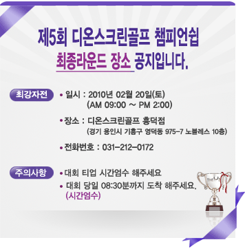 Á¦5ȸ µð¿Â½ºÅ©¸°°ñÇÁ èÇǾ𽱠ÃÖÁ¾¶ó¿îµå Àå¼Ò °øÁöÀÔ´Ï´Ù.