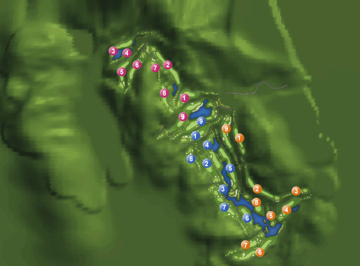 Valley, Lake, Mountain ÃÑ 3°³ÀÇ ÄÚ½º·Î ±¸¼ºµÈ 27ȦÀÇ Å¬·´À¸·Î, ÀüüÀûÀ¸·Î ÀüÀå ±æÀ̰¡ ±æ°í Æä¾î¿þÀ̰¡ ³Ð¾î ³Ë³ËÇÑ ºÐÀ§±â°¡ ´À²¸Áø´Ù. Àü¹æ ½Ã¾ß°¡ ºñ±³Àû °³¹æÀûÀ̰í ÄÚ½º ÀÚü¿¡ ¾÷´Ù¿îÀÌ ½ÉÇÏÁö ¾ÊÀ¸¸ç µµ±×·ºÈ¦ÀÌ ¸¹Áö ¾Ê¾Æ ½Ã¿øÇÑ Æ¼¼¦À» Áñ±æ ¼ö ÀÖ´Ù. ÇÏÁö¸¸ ÀüüÀûÀ¸·Î ÄÚ½º¿¡ ÇØÀúµå ±¸¿ªÀÌ ¸¹°í º¡Ä¿°¡ ¸¹ÀÌ ¸ô·Á ³µµ°¡ Àִ ȦµéÀÌ ÀÖ¾î, ÀûÀýÇÑ °ø·«ÀÌ ÇÊ¿äÇÏ´Ù. ÆÛÆÃ ¶ÇÇÑ ¹«³ÇÑ ÆíÀ̶ó Å« ½Ç¼ö¸¸ ¾ø´Ù¸é ÁÁÀº ¼ºÀûÀ» ³¾ ¼ö ÀÖ´Â ÄÚ½ºÀÏ °ÍÀÌ´Ù.