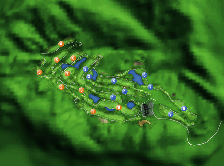 ÄÚ½º¸¦ µÑ·¯½Ñ ´É¼±ÀÌ ¸¶Ä¡ º´Ç³À» ¼¼¿öµÐ ´À³¦ÀÇ »ê¾ÇÇü °ñÇÁÀåÀ¸·Î Out, In CourseÀÇ ÃÑ 18Ȧ·Î ±¸¼ºµÇ¾î ÀÖ´Ù. »ê¾ÇÁöÇüÀ» ÀÌ¿ëÇÑ ÀÚ¿¬ÀûÀÎ ÇüÅÂÀÇ Æä¾î¿þÀÌ ¾ðµâ·¹À̼Ç, ¿ä¼Ò¿ä¼Ò ¹èÄ¡µÈ ÇØÀúµå ±×¸®°í µµ±×·ºÇüÅÂÀÇ ÄÚ½º°¡ ¸¹¾Æ Ç÷¹À̾î´Â ÄÚ½º¸¦ Á¤È®È÷ ÆÄ¾ÇÇÑ ÈÄ Æ¼¼¦À» ½ÃµµÇÏ´Â °ÍÀÌ Áß¿äÇÏ´Ù. ³¡±îÁö ÁýÁß·ÂÀ» ÀÒÁö ¾Ê°í Ç÷¹ÀÌ ÇØ³ª°£´Ù¸é ÁÁÀº ½ºÄھ ±â·ÏÇÒ ¼ö Àִ Ŭ·´ÀÌ´Ù.
